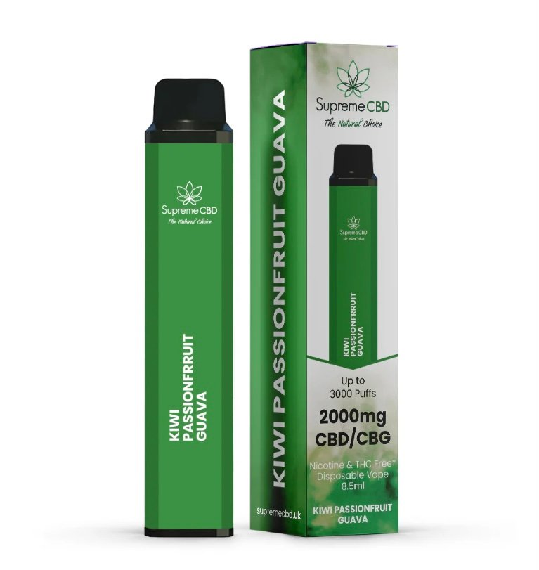 Introducing Supreme CBD’s Kiwi Passionfruit Guava Disposable CBD Vape with 2000 mg of CBD Isolate.
