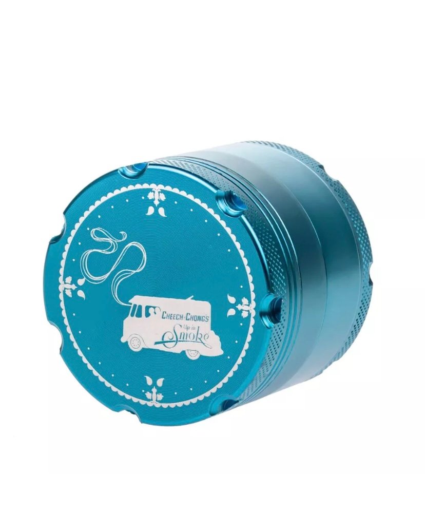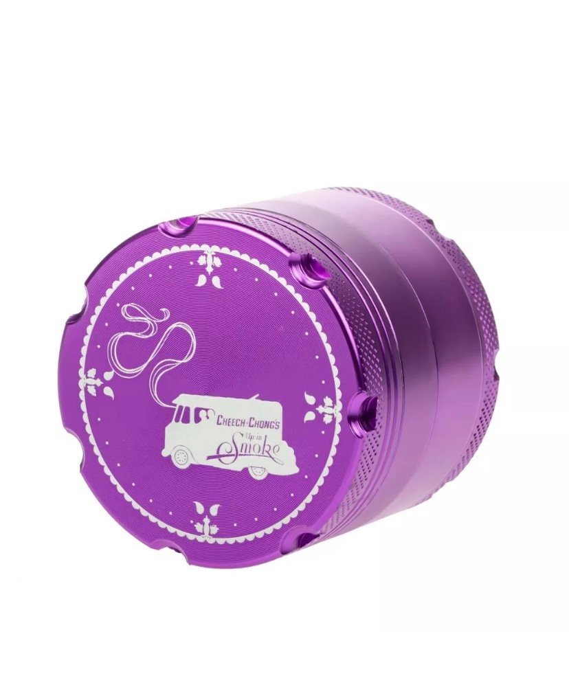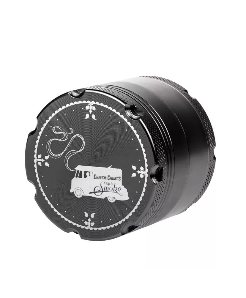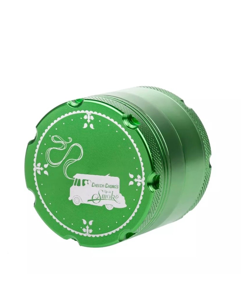 This solid Cheech & Chong 4-part grinder is made entirely out of CNC (computer numeric controlled) aluminum and measures 5 cm / 2 inches across. The pocket size grinder is equipped with sharp, diamond-shaped teeth that effortlessly shred your favorite dry herbs into a fluffy, more manageable consistency.