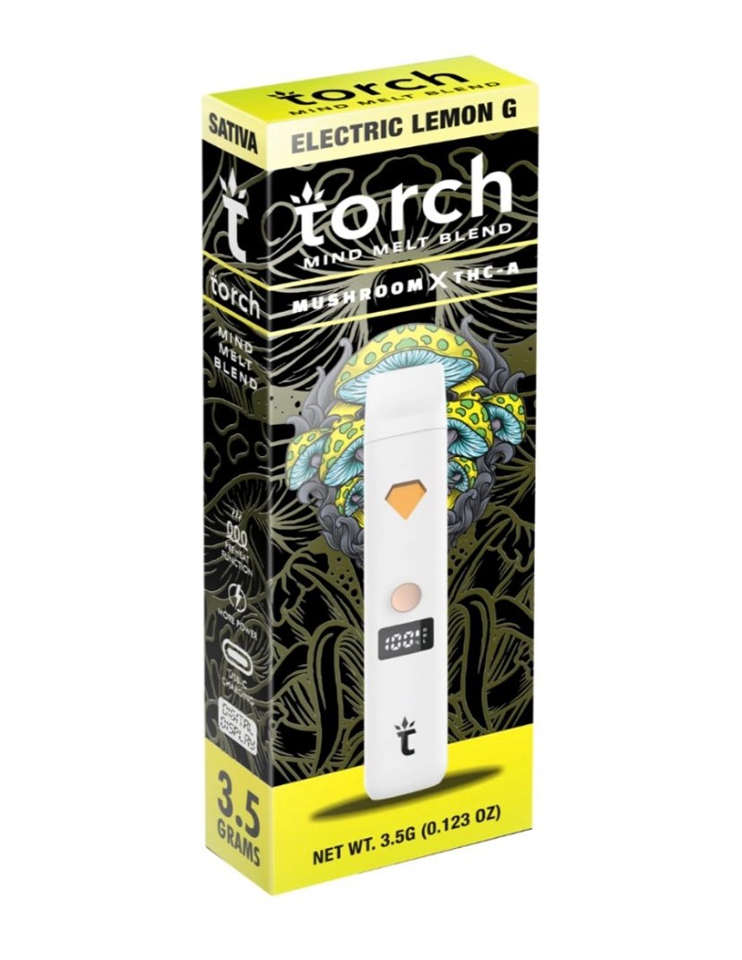 Premium Blend: Electric Lemon G Torch Mind Melt vape features a meticulously crafted blend of lemon flavor, THC-A, and mushroom extracts. Each ingredient is carefully selected for its quality and potency, ensuring a superior vaping experience with every puff.