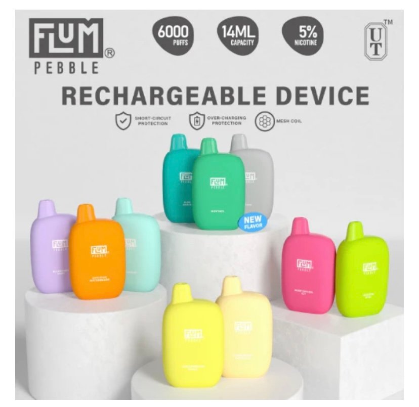& Free ShippingFLUM introduces the FLUM Pebble, a 6000 puffs rechargeable disposable vape from one of the most popular disposable manufacturers thus far. The FLUM Pebble packs in 14ml of vape juice at 5% nicotine, paired with a mesh coil for ultimate flavor and vapor delivery. Powering the Pebble is a 600mAh internal battery which is rechargeable via USB-C.