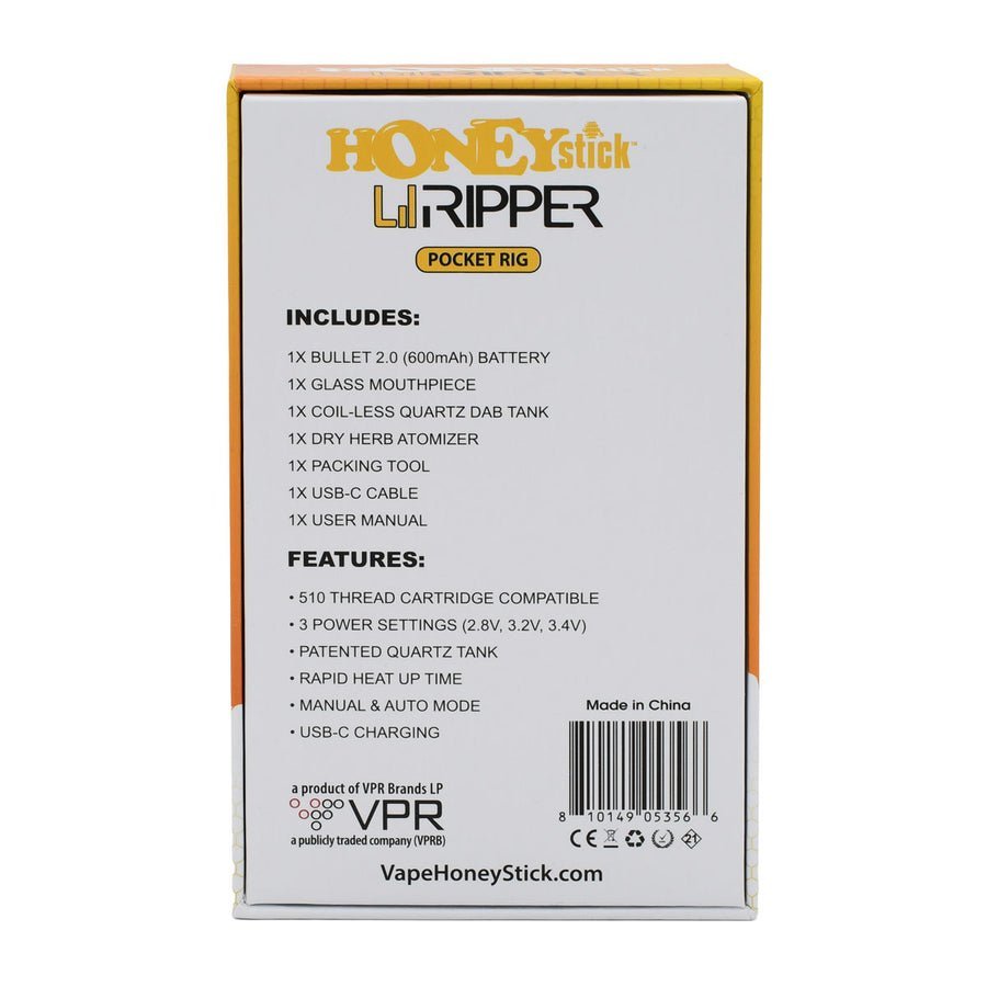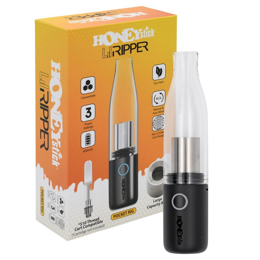 Meet the HoneyStick Lil Ripper E-Rig, a cutting-edge portable electric rig vaporizer designed for both wax and dry herb enthusiasts. Combining convenience, power, and style, this pocket-sized powerhouse offers an effortless vaping experience with its coilless quartz wax atomizer and non-contact coil dry herb chamber. Whether you’re into dabs or flower, the Lil Ripper ensures smooth, flavorful hits every time.