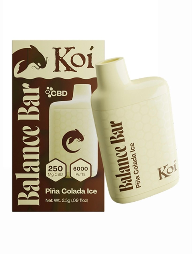 Transport yourself to a tropical paradise with the Pina Colada Ice Koi Balance Bar CBD 6000 Puffs Disposable Vape. Enjoy the luscious blend of coconut and pineapple, infused with a hint of icy coolness. With 250mg of CBD in 12ml of e-liquid, this disposable vape provides a vacation-inspired escape.