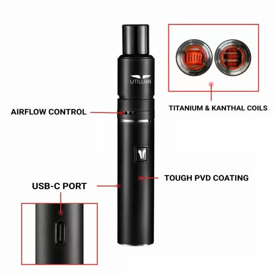 Enjoy vaping how you like with the Utillian 5. It has 4 different voltage options, great for those who want customized sessions ranging from: 2.2 Volts to 2.8 Volts
