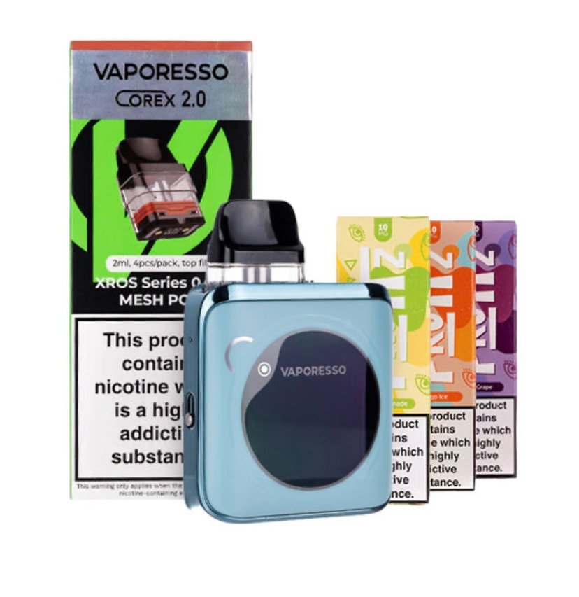 Discover the Vaporesso XROS 4 Nano Pod Kit Bundle, and embrace cost effective and eco-friendly vaping. This bundle includes the eye-catching XROS 4 Nano Pod Kit, 1 pack of Corex 2.0refillable pods and 3 Fruitz nic salt e-liquids, giving you everything you need for 20% less!