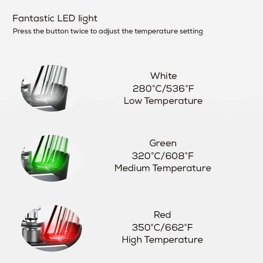 Simply load your concentrate onto the ceramic cup coil. Click the button 3 times consecutively to turn on/off, select a temperature by clicking twice to scroll through each option, preheat for ten seconds with 1 click and enjoy huge, tasty clouds.